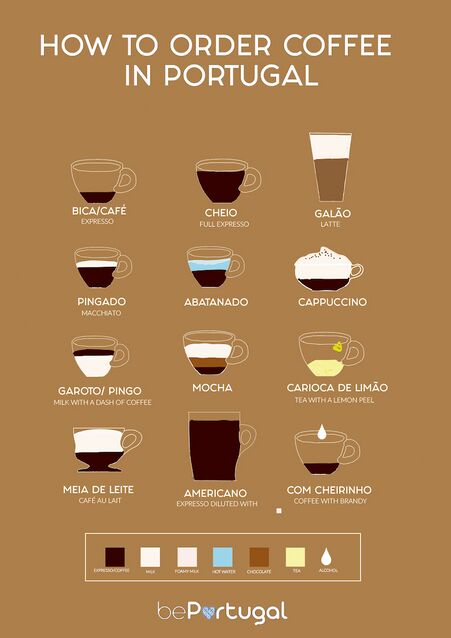 | Bica/Café: Espresso (less water) | Meia de Leite: Flat White |